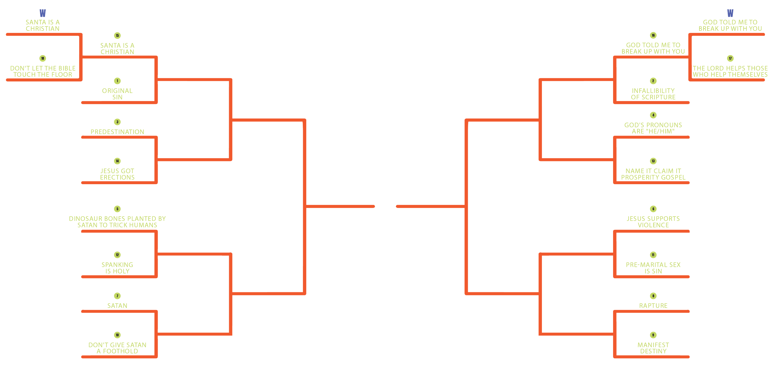 We collected the funniest, wildest, most unhinged church takes you've ever heard—and now they’re battling it out in a March Madness–style bracket to determine the worst theological take of all time.